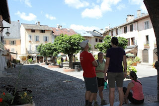 Albertville itself is a lovely enough town (with gorgeous surroundings), but it is not the classic historic European town. But they have one of those too, up on the hill, only 25 minutes by foot from our front door. In fact, we can see it from our third story window. Conflans, the medieval city, about 1/3 of the way up the mountain, dating back to the 14th century. Five of us set off to see it.